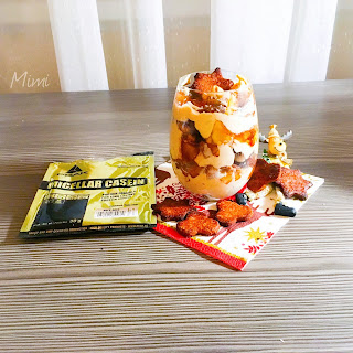 ● pár szem egészséges mézeskalács, vagy más keksz, vagy zabpehely + édesítő + mézeskalács fűszer● 1 adag mogyorós fehérjepor (Micellar Casein)